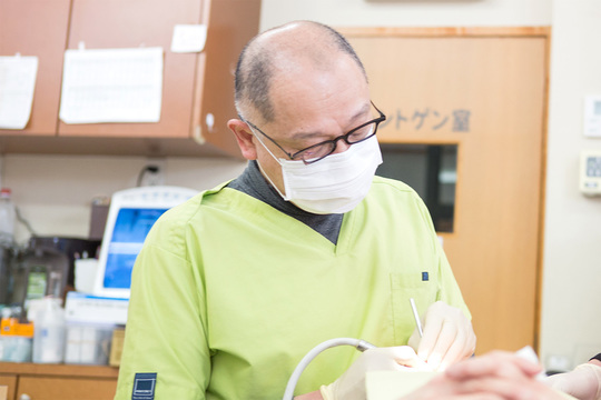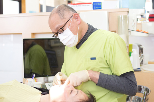 歯石を取り除く処置が「痛い」というイメージをお持ちの方も多いですが、これは歯ぐきに炎症がある場合、治療器具が当たると痛みが発生しやすいためです。当院では歯周内科治療などで炎症を改善させてから処置を行うので、痛みの少ない治療を実現しています。